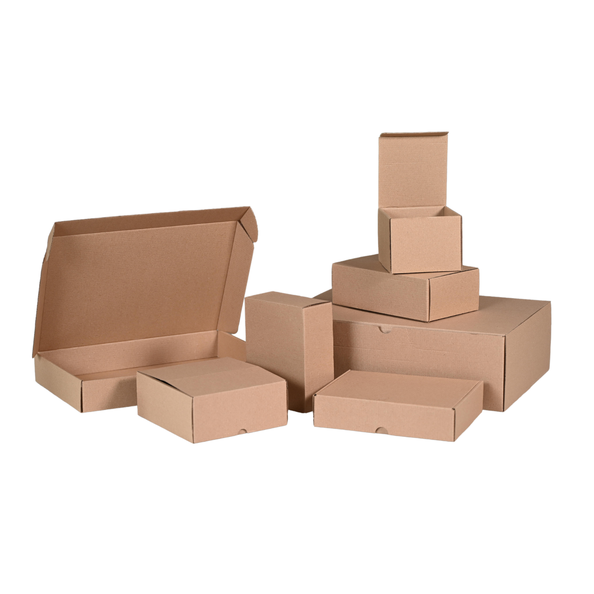 - Felnyitható tetejű, önzárós hullámkarton doboz.